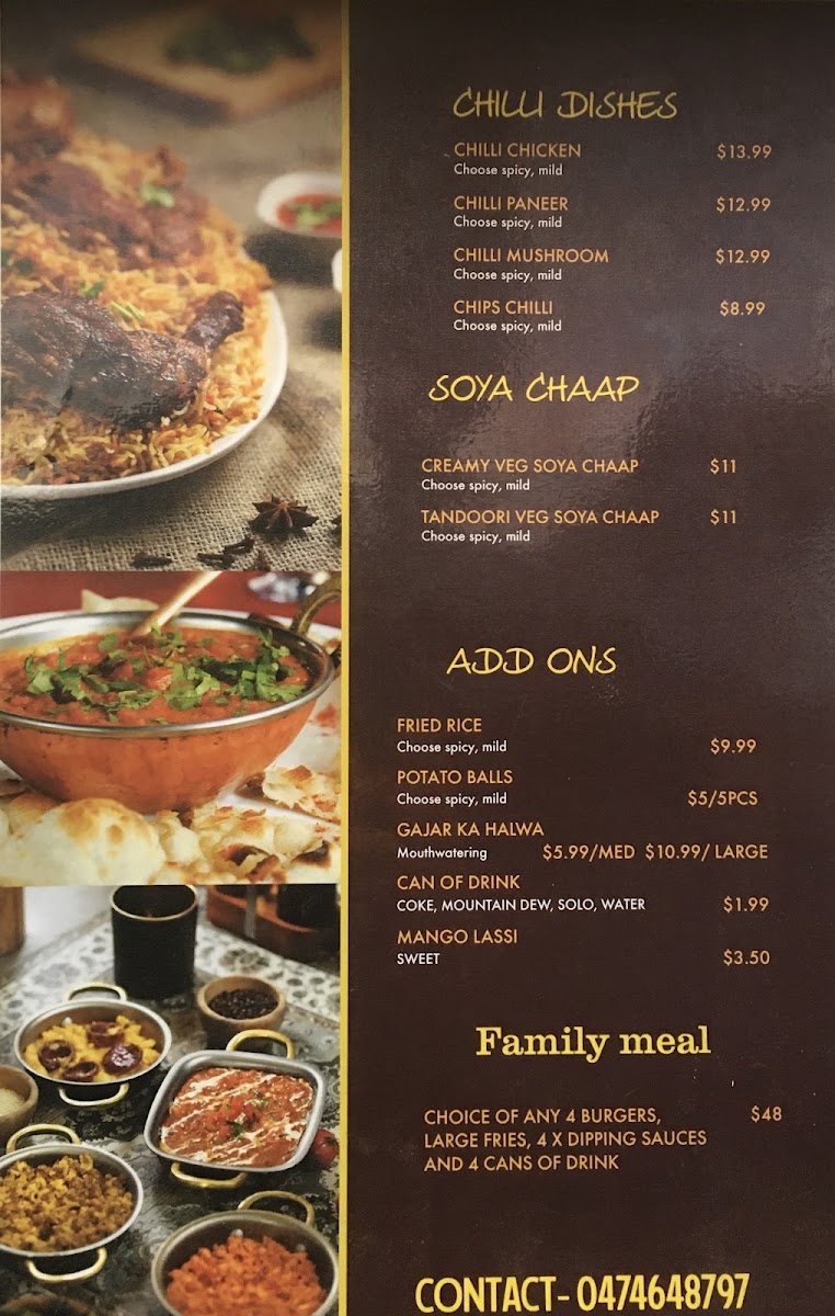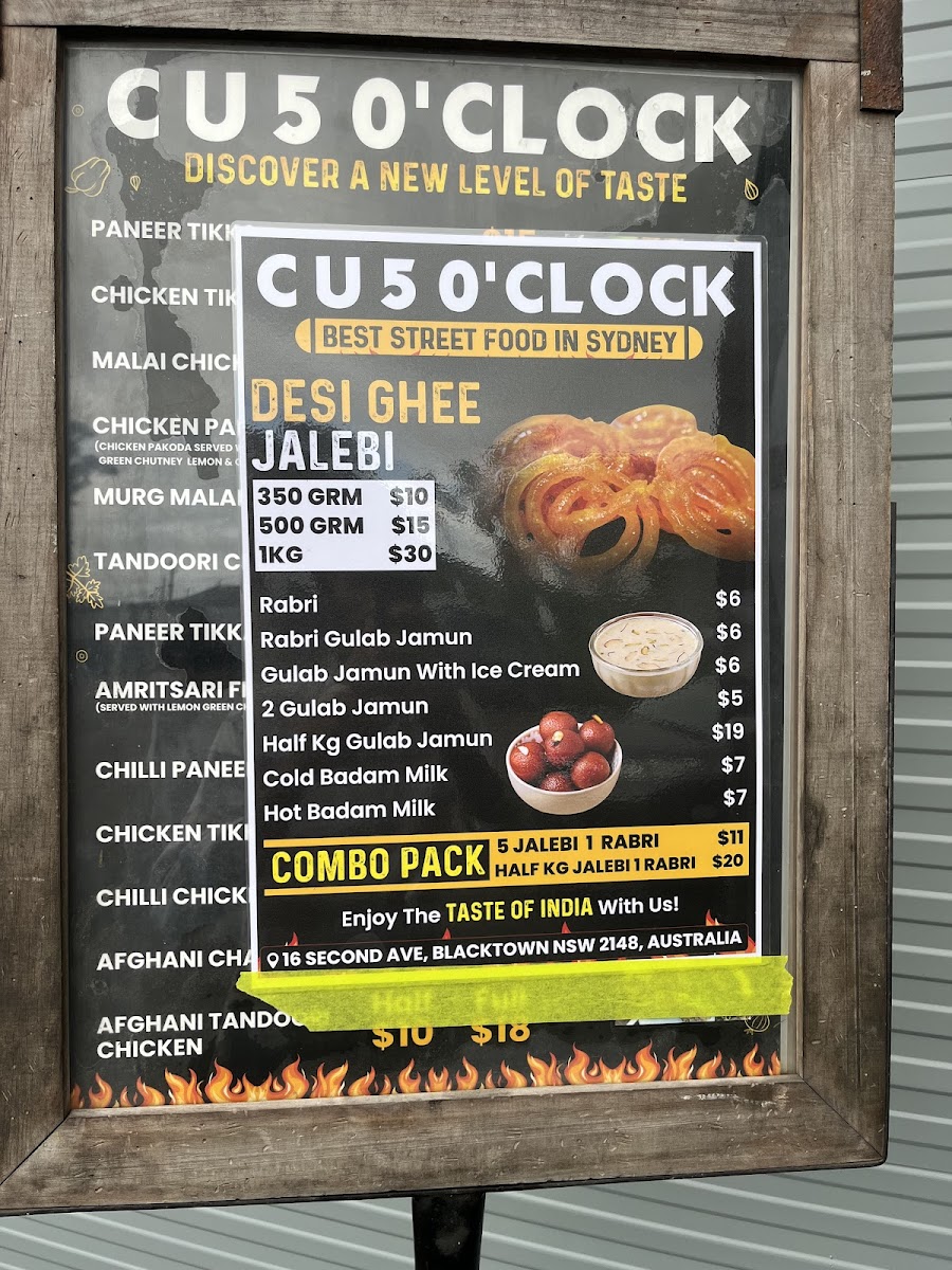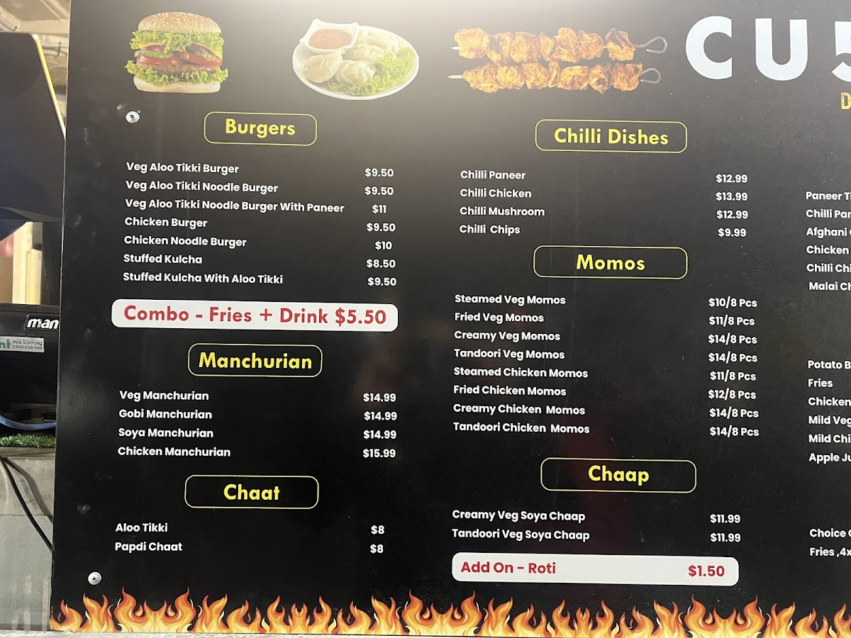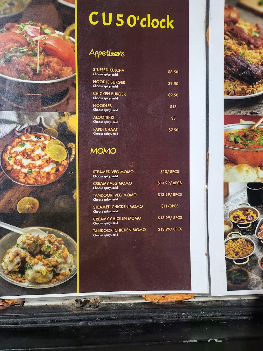 Welcome to CU5O'CLOCK, where culinary creativity meets comfort food in the heart of Blacktown! Located at 16 Second Ave, our unique menu is bursting with flavors that invite you to indulge in some truly delightful specialties. Satisfy your cravings with our standout Noodle Burger, a delicious fusion that you won't want to miss. Or try the spicy Chilli Chicken and savory Tandoori Chicken Momo for a taste of our bold flavors. For those looking for lighter bites, our Veg Spring Rolls and Aloo Tikki Chaat make for perfect appetizers. Don’t forget to grab a Chicken Roll for a quick and tasty meal on the go, and treat yourself to the luscious Gulab Jamun for dessert. Come explore the CU5O'CLOCK Menu and discover your new favorite dish!